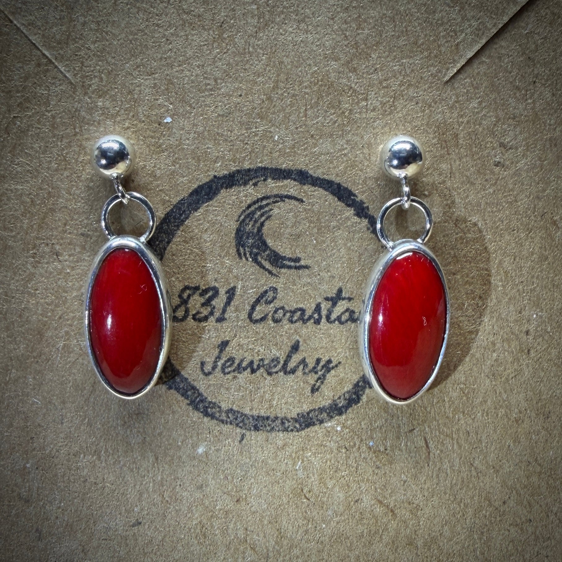 Bamboo Coral post Sterling Silver Earrings, stones are roughly 9mm x 7mm, branded.