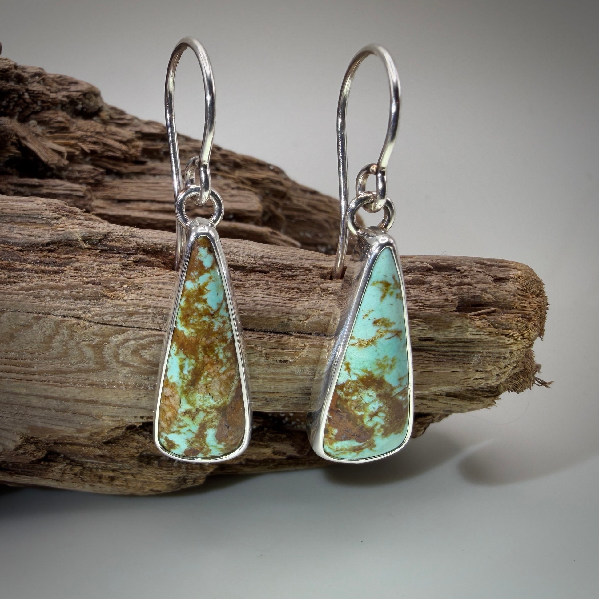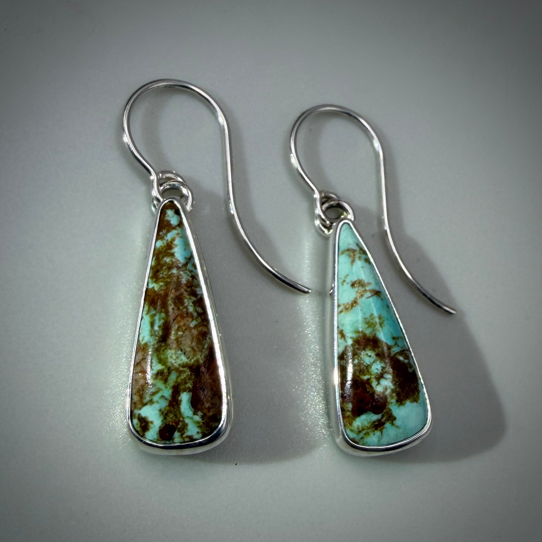 Number 8 mine Turquoise (NV) Sterling Silver Earrings, stones are roughly 22mm x 8mm, branded.