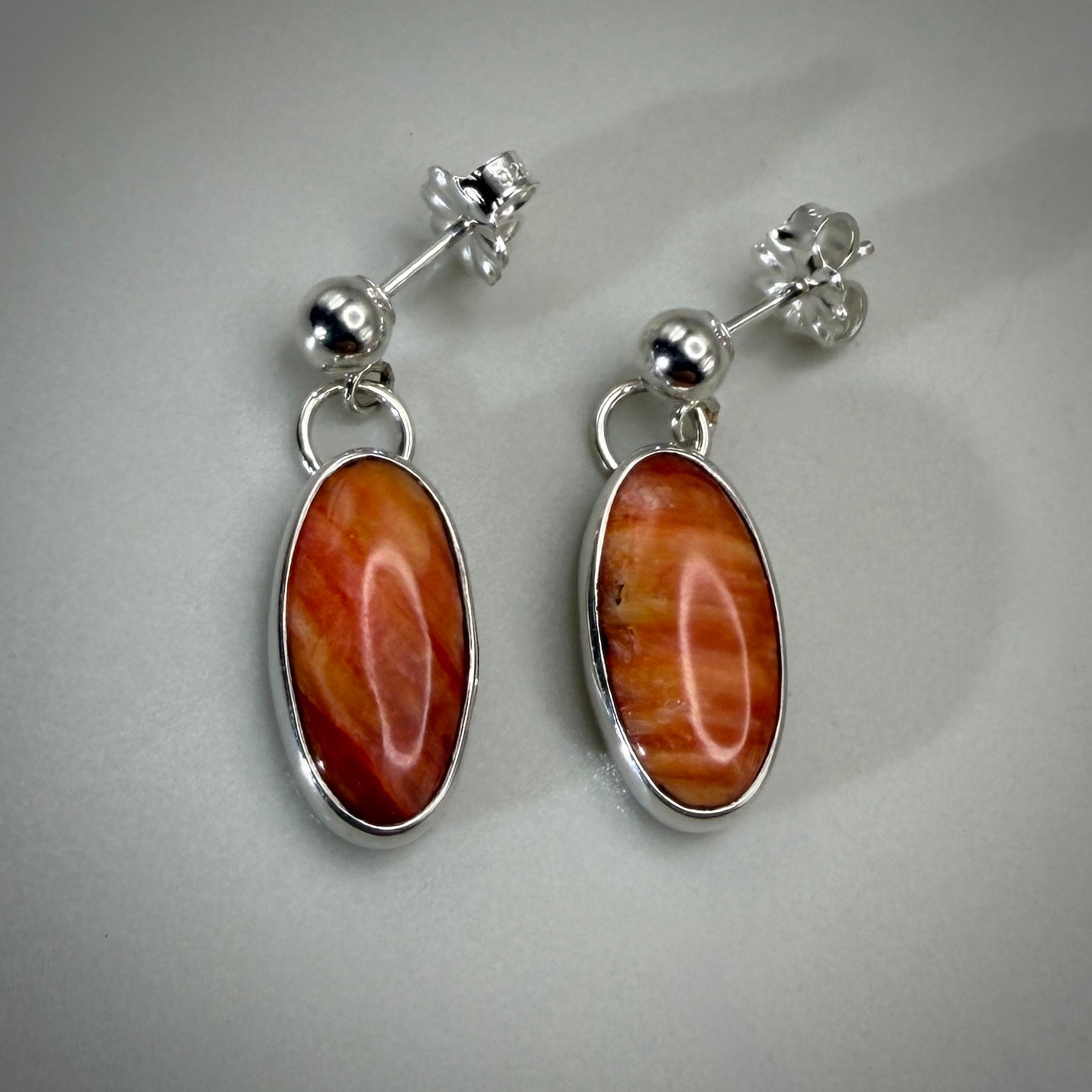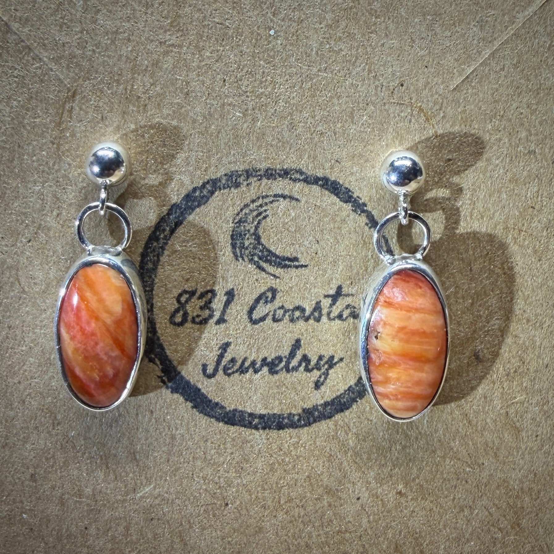 Spiny Oyster Shell post Sterling Silver Earrings, stones are roughly 9mm x 7mm, branded.
